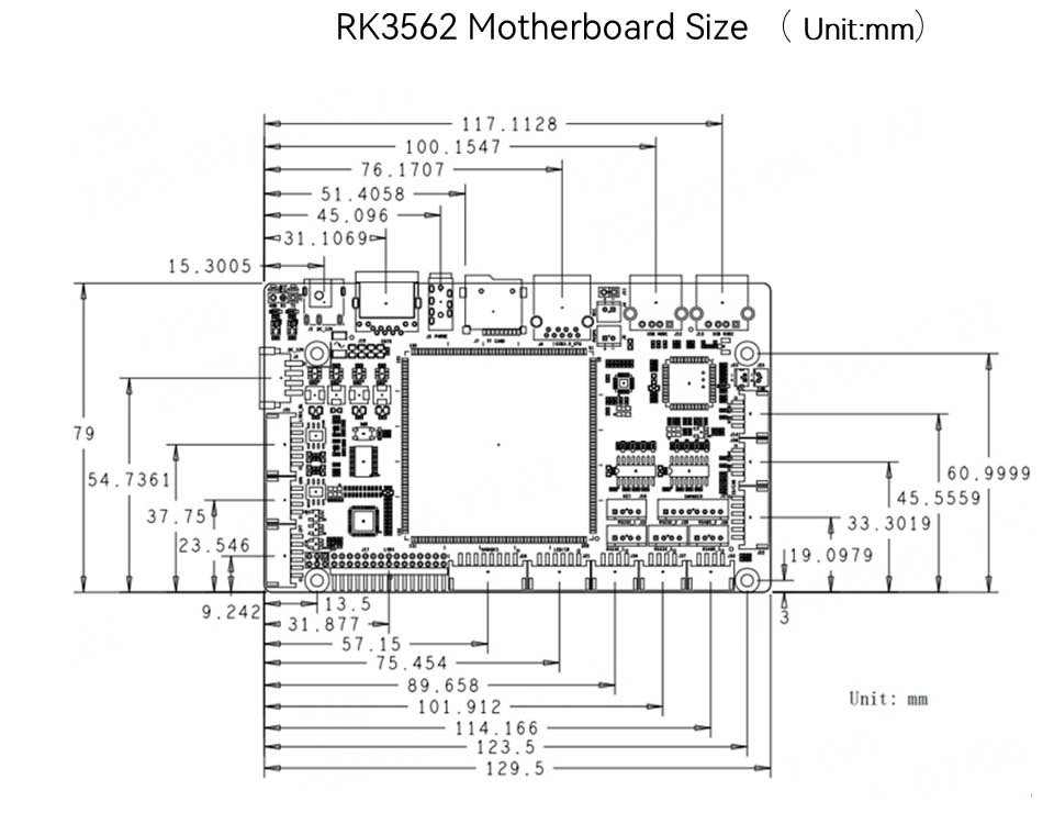 Malli: RK3562/RK3562JCPU: Quad-Core Cortex-A53, päätiheys jopa 2,0 gHzgpu: Mali-G52NPU: 1TOPS-tietojenkäsittelyvoima (teollisuusluokan RK3562J ilman NPU)